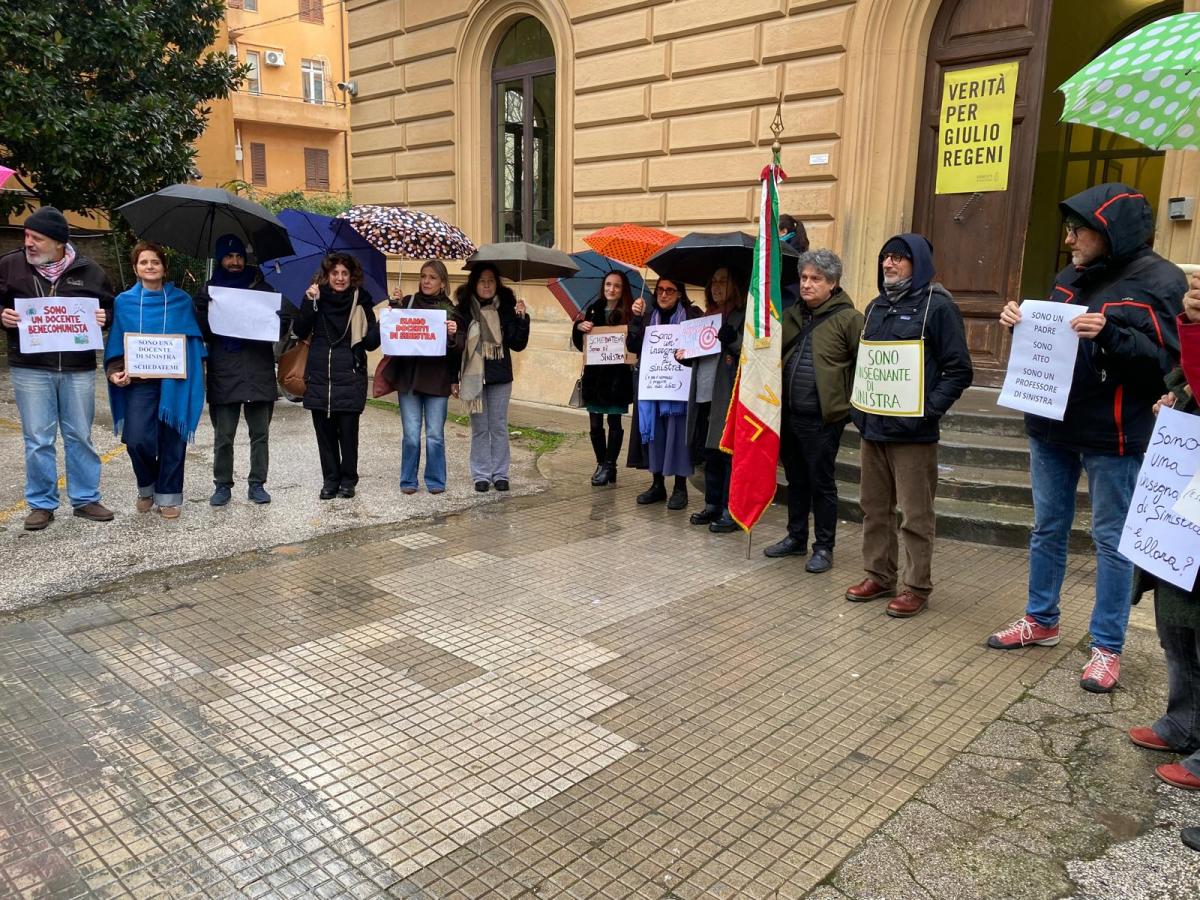 Tra i cartelli presenti anche alcuni esponenti locali dei sindacati FLC e COBAS che insieme alla Gilda degli insegnanti hanno convocato per il 6 febbraio un'assemblea provinciale proprio sulla libertà di insegnamento e la tutela legale dei docenti che recentemente hanno subito ispezioni ministeriali per le proprie scelte didattiche. Iniziativa che anticipa e prepara la settimana di mobilitazione che l'osservatorio contro la militarizzazione delle scuole e dell'università ha promosso a livello nazionale dato il clima di censura che vive oggi il mondo dell'istruzione e della formazione.