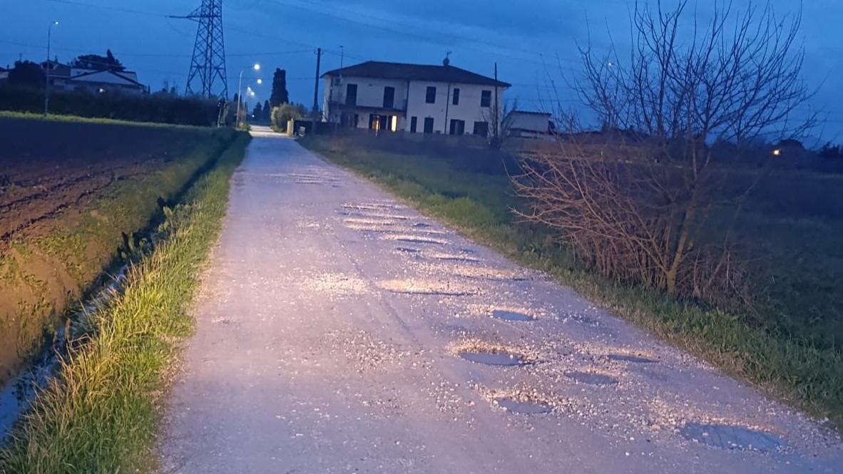 Le fotografie inviate dai residenti mostrano buche estese e un fondo stradale irregolare.