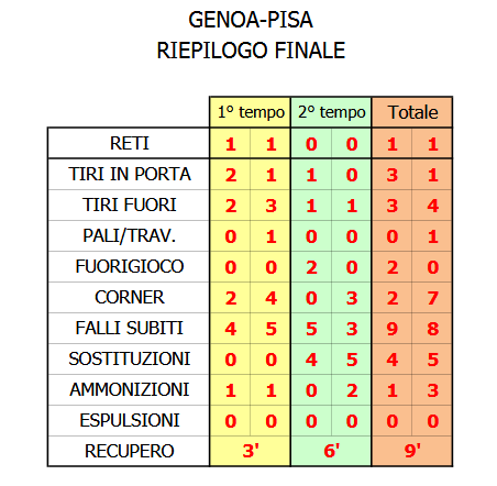 GENOA-PISA SPORTING CLUB: 1-1 (diciottesima giornata serie A)