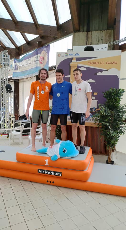 Un capitolo a parte merita il capitano della compagine cascinese Fabio Moni classe 1997 che centra le finali in tutte e 4 le gare disputate ottenendo il bronzo nella gara veloce del dorso ma soprattutto nella gara regina dei 100 stile un crono strepitoso abbattendo il muro dei 50 secondi con il tempo di 49"70 !