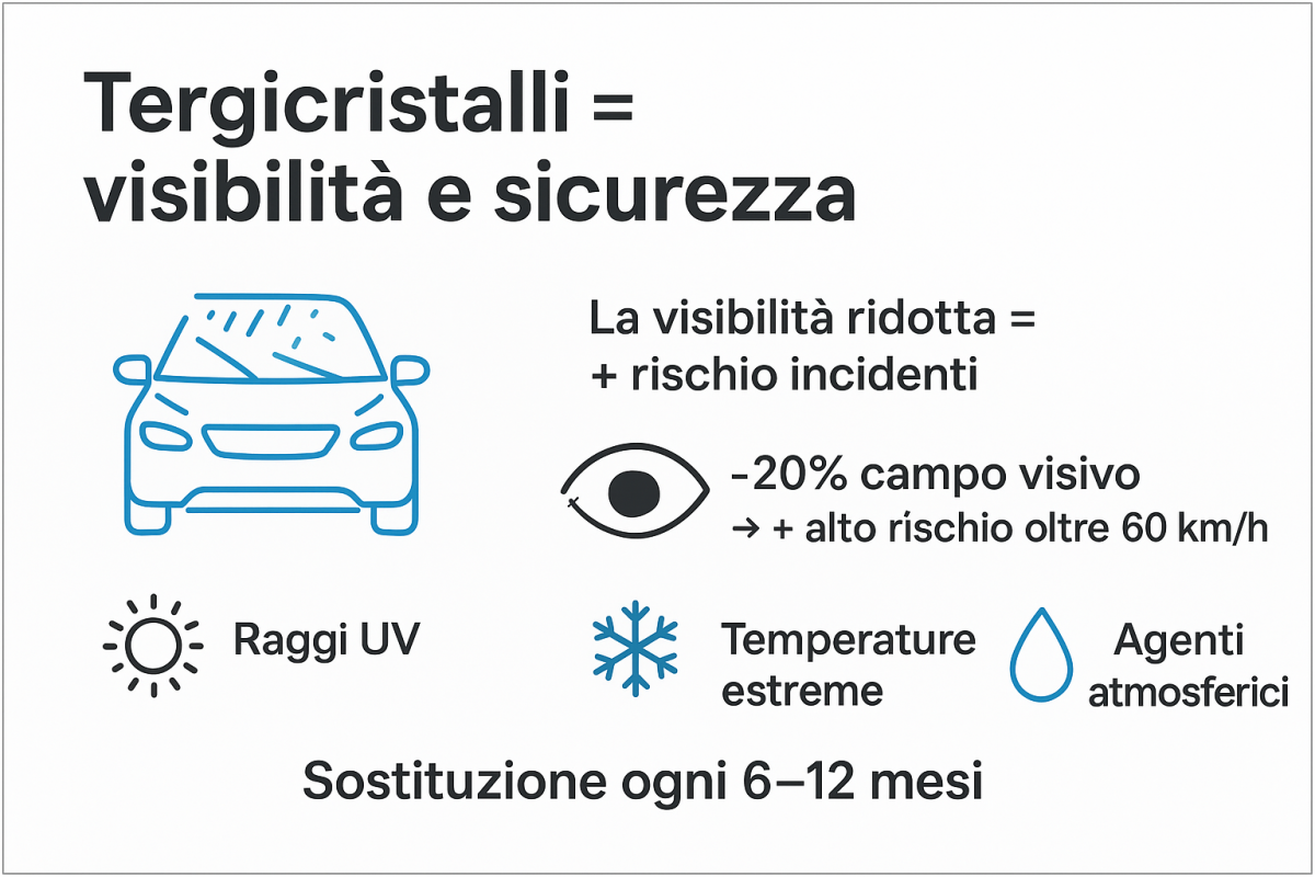 I tergicristalli sono tra i componenti più sottovalutati ma essenziali per la sicurezza stradale. I dati 2024-2025 mostrano che la visibilità è un fattore critico, poiché varie problematiche infrastrutturali incidono sulla percezione e sulle reazioni dei conducenti. Una riduzione del campo visivo utile, anche del 20%, aumenta il rischio di incidenti oltre i 60 km/h. I meccanici raccomandano la sostituzione ogni sei-dodici mesi, ma molti automobilisti attendono finché le lame non lasciano striature sul parabrezza. Il deterioramento della gomma avviene gradualmente per l'esposizione a raggi UV, temperature estreme e agenti atmosferici. In inverno, spazzole danneggiate possono anche graffiare il vetro, causando danni costosi rispetto a una sostituzione preventiva. Secondo la fonte esperta autoparti.it, le spazzole della serie Aerotwin presentano una struttura senza telaio con meccanismo a molla per un’aderenza uniforme, mentre quelle della linea Twin utilizzano una doppia struttura metallica resistente alla corrosione e alle basse temperature.