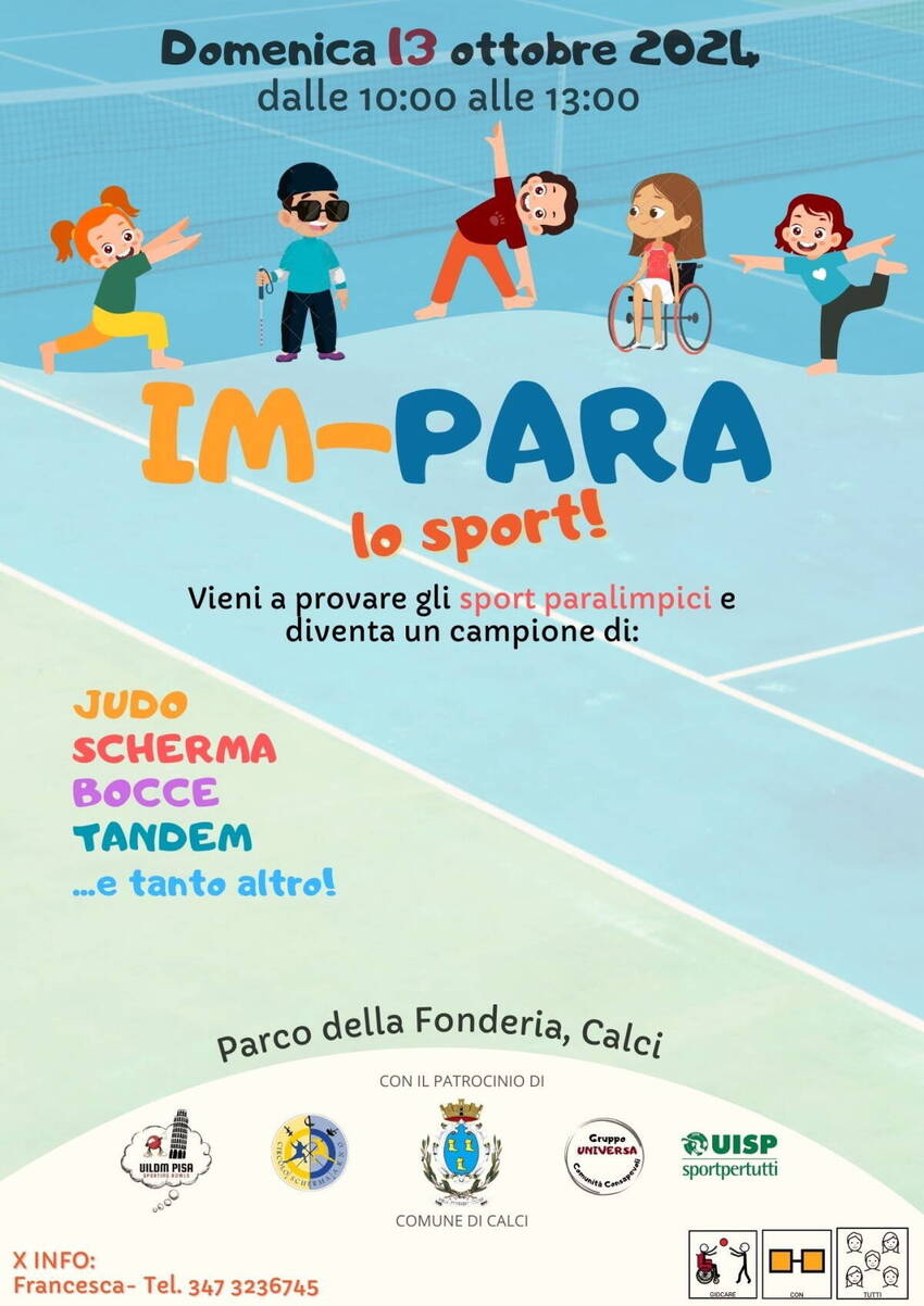 Domenica 13 Ottobre 2024, dalle 10 alle 13, il Parco delle Fonderie di Calci ospiterà la manifestazione “Im-para lo sport”