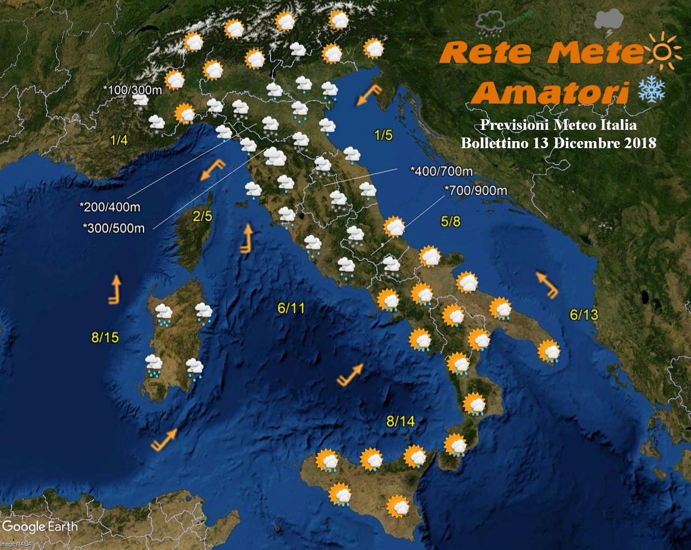 In Italia la giornata di giovedì vedrà condizioni di maltempo sui settori del Centro-Sud, con precipitazioni nevose fin a quote di bassa collina.