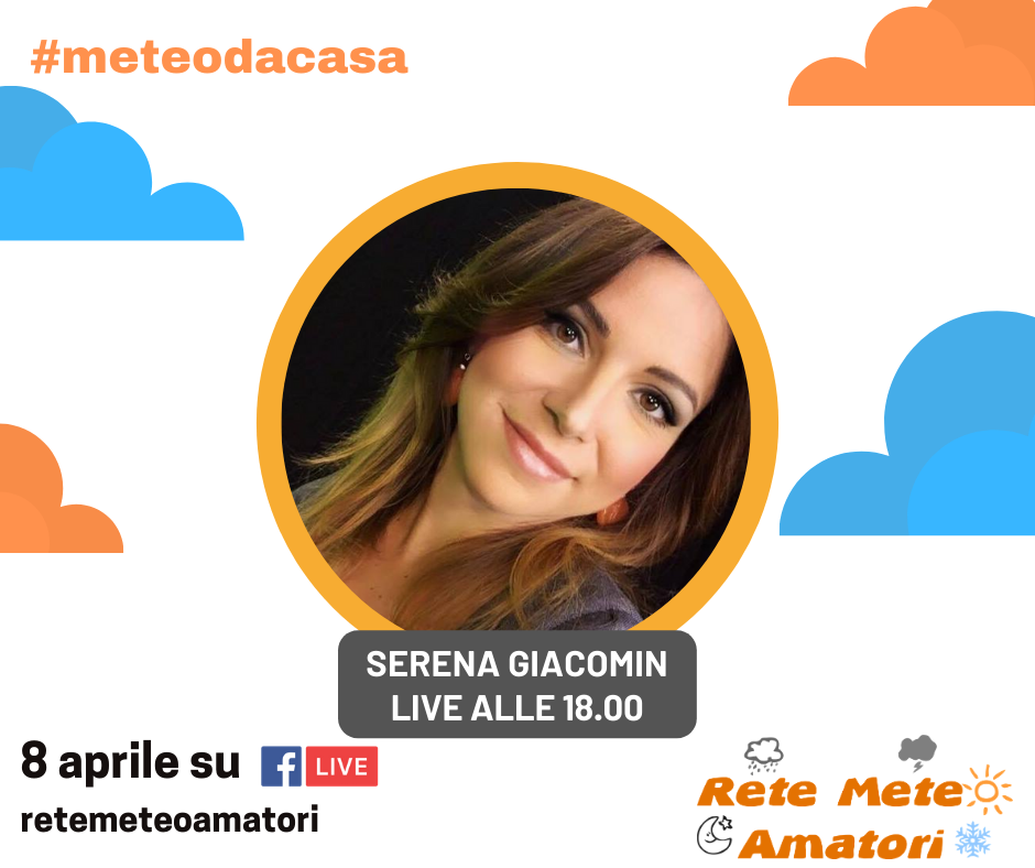 Evento da non perdere! Mercoledì 8 Aprile sulla pagina Facebook di Rete Meteo Amatori, alle ore 18.00, sarà nostra ospite Serena Giacomin, meteorologa, divulgatrice scientifica e presidente dell'Italian Climate Network.