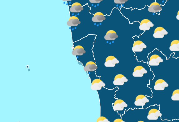 Nuvoloso con precipitazioni sparse, anche a carattere di rovescio, più frequenti sulle zone interne e centro-settentrionali.