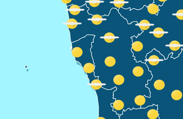 Poco nuvoloso o velato; nel pomeriggio temporanei addensamenti con possibilità di isolati rovesci temporaleschi, in particolare in prossimità dei crinali dell'Appennino.