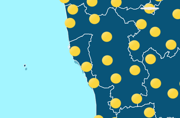 Poco nuvoloso con nebbie mattutine sulle pianure e possibili nubi basse sulla costa. Nel pomeriggio nubi in transito.