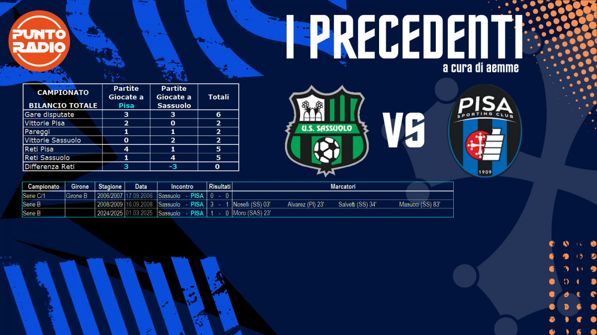 Tre soli i precedenti. Contro i neroverdi il Pisa non ha mai vinto, ma ha collezionato solo un pareggio nel primo scontro fra le due squadre, in Serie C nella stagione 2006/07. Poi sono arrivate due sconfitte, l’ultima nel passato campionato 1-0 con goal di Moro.
