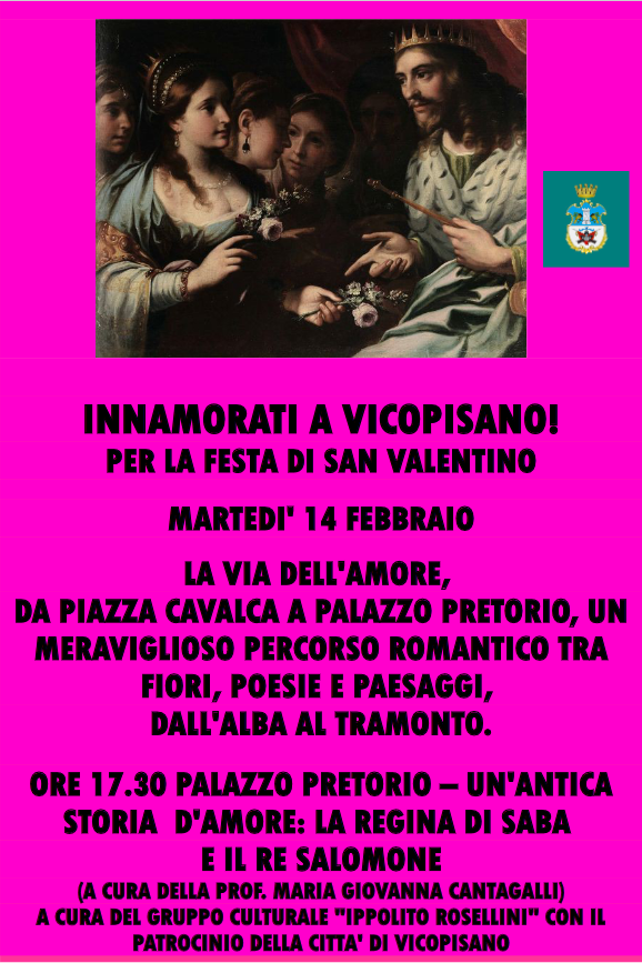Alle 17.30, presso Palazzo Pretorio, sarà poi raccontata dalla professoressa Maria Giovanna Cantagalli un'antica storia d'amore, quella tra la regina di Saba e il re Salomone.
