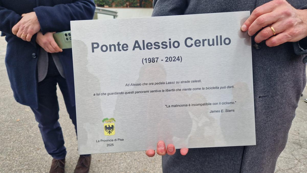 Mercoledì 10 dicembre, la Provincia di Pisa ha intitolato ad Alessio Cerullo il ponte recentemente riqualificato che collega il territorio di Vicopisano a quello di Calcinaia, tra San Giovanni alla Vena e Fornacette. L’iniziativa, concepita come momento di memoria civile, rientra nel più ampio programma dell’amministrazione provinciale volto alla prevenzione degli incidenti e al miglioramento complessivo delle condizioni di sicurezza sulla rete viaria.