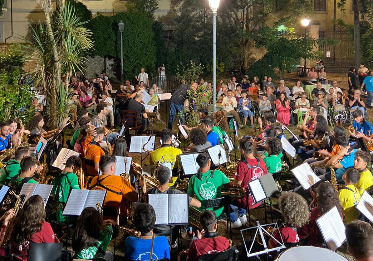 La location è stata il giardino di Villa Crastan, nel cuore della città, dove si è esibita un'orchestra formata da oltre 80 giovani sassofonisti allievi e un gruppo di giovani tutor già concertisti esperti.