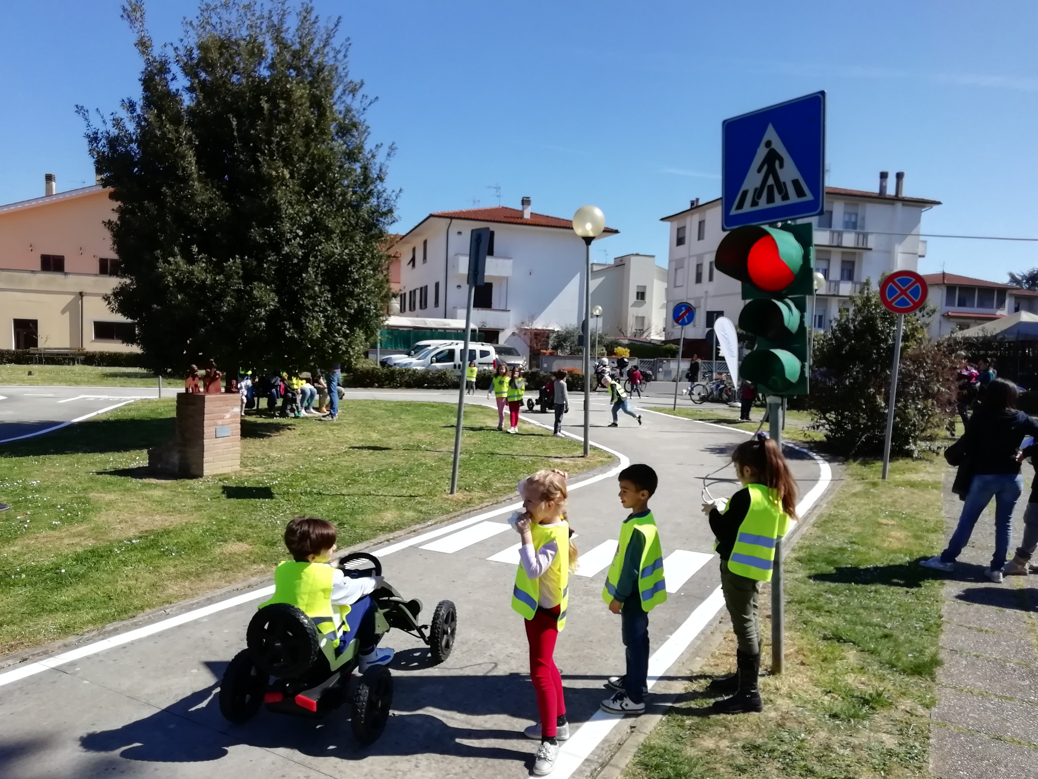 Conclusi i corsi di sensibilizzazione e informazione condotti nell’ambito del progetto “A scuola sicuri”, sabato 30 marzo, appunto, si è svolta l’iniziativa “Imparare … giocando”. Nel pomeriggio i ragazzi delle scuole terze elementari di Calcinaia e la mattina quelli di Fornacette si sono trasformati in piccoli automobilisti in erba che, a bordo di auto a pedali, hanno percorso in lungo e in largo la pista di Piazza Noves, stando ben attenti a tutte le indicazioni del Codice della Strada e ad un estemporaneo semaforo allestito proprio dall’efficiente squadra della Polizia Municipale.