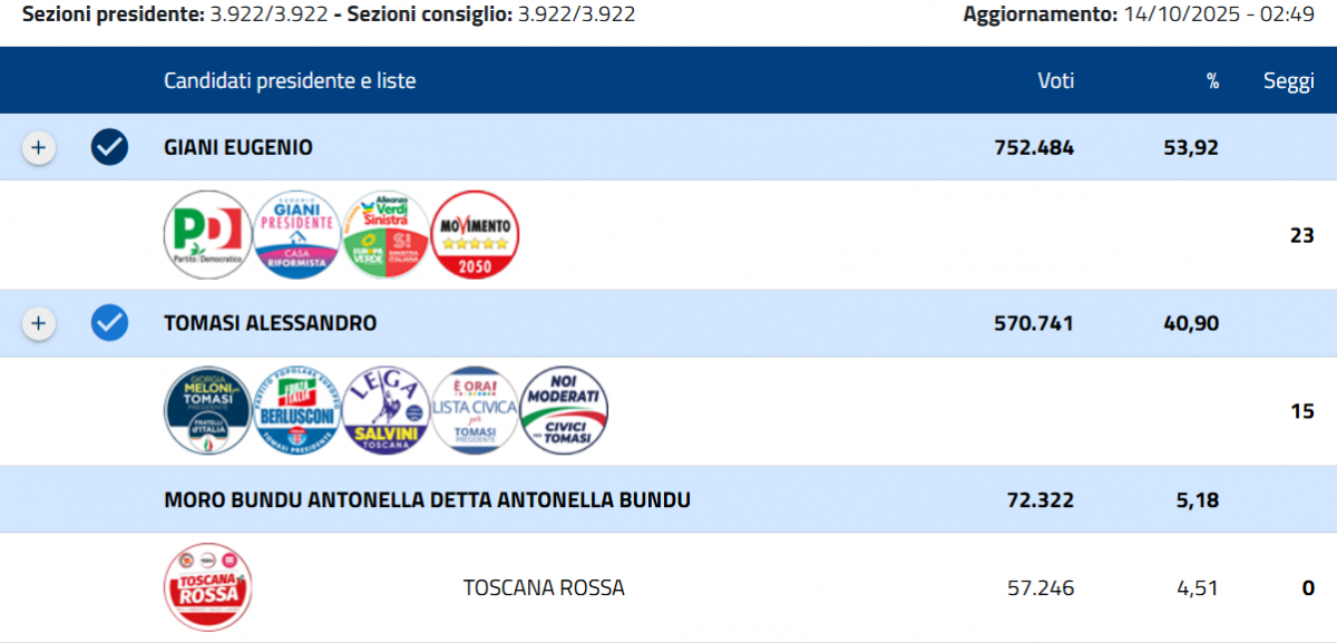 La Toscana ha scelto la continuità: Eugenio Giani confermato presidente