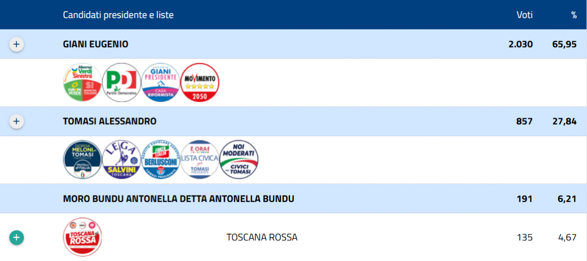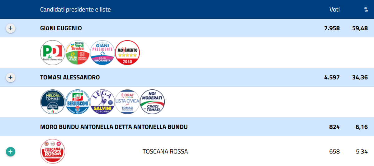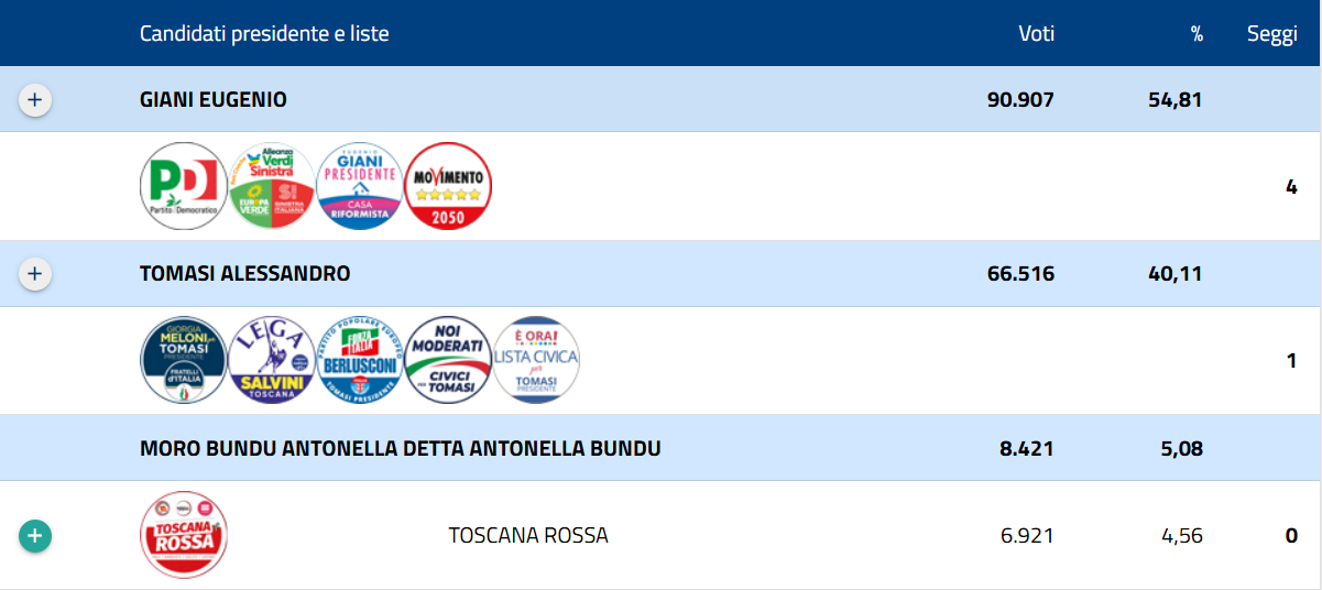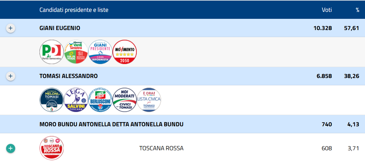 Sfuma per poco il sogno di Toscana Rossa di entrare in consiglio regionale, flop della Lega