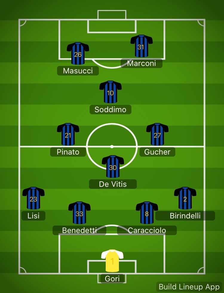 Mai come questa volta immaginare un undici iniziale è complicato. D’Angelo avrà a disposizione tutti gli effettivi, compreso quel Marco Varnier che sembrava destinato a tornare in campo solo nella stagione 2020/21 e al quale l’emergenza coronavirus, dopo tanta cattiva sorte, ha regalato un’ancora di salvezza allungando all’inverosimile il campionato tranne Marius Marin appiedato dal giudice sportivo nel concitato post partita di Crotone e Moscardelli in via di recupero per un problema alla spalla. Probabile che i nerazzurri riprendano da dove erano stati interrotti, ovvero da quel 4312 visto spesso e volentieri da gennaio in poi. Spazio quindi a Gori fra i pali, Birindelli e Lisi rispettivamente a destra e sinistra con Benedetti e Caracciolo in mezzo; a centrocampo De Vitis potrebbe essere il vertice basso con Pinato e Gucher nel ruolo di mezzali. L’ormai ristabilito Soddimo andrà a fare il trequartista, mentre in avanti spazio alla coppia Masucci-Marconi.