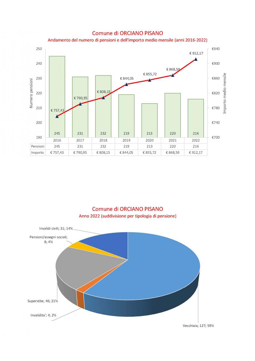 I certificati di pensione del 2022 relativi a persone residenti nel comune di Orciano Pisano sono 216, con un calo dell’1,82% rispetto a quelli del 2021, quando furono 220 (4 in più).