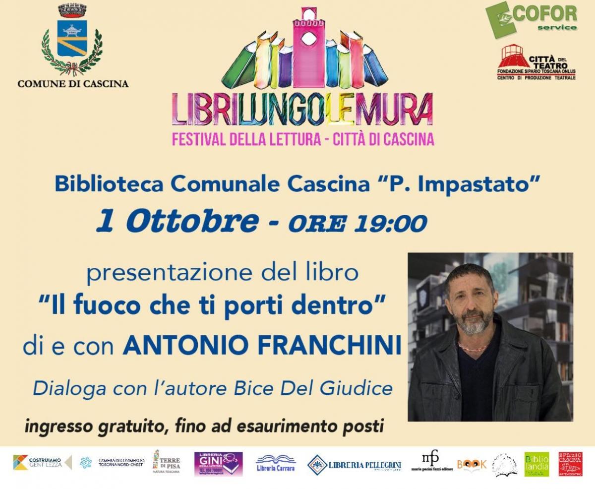 Mercoledì primo ottobre (ore 19, Gipsoteca della Biblioteca comunale “P.Impastato”) nuovo appuntamento della rassegna “Libri lungo le Mura. Festival della Lettura città di Cascina” con lo scrittore Antonio Franchini, per la presentazione del libro “Il fuoco che ti porti dentro”.