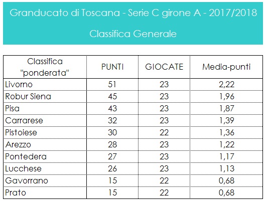 Posizioni analoghe a quelle della classifica generale per Livorno e Robur Siena, rispettivamente prima e seconda.