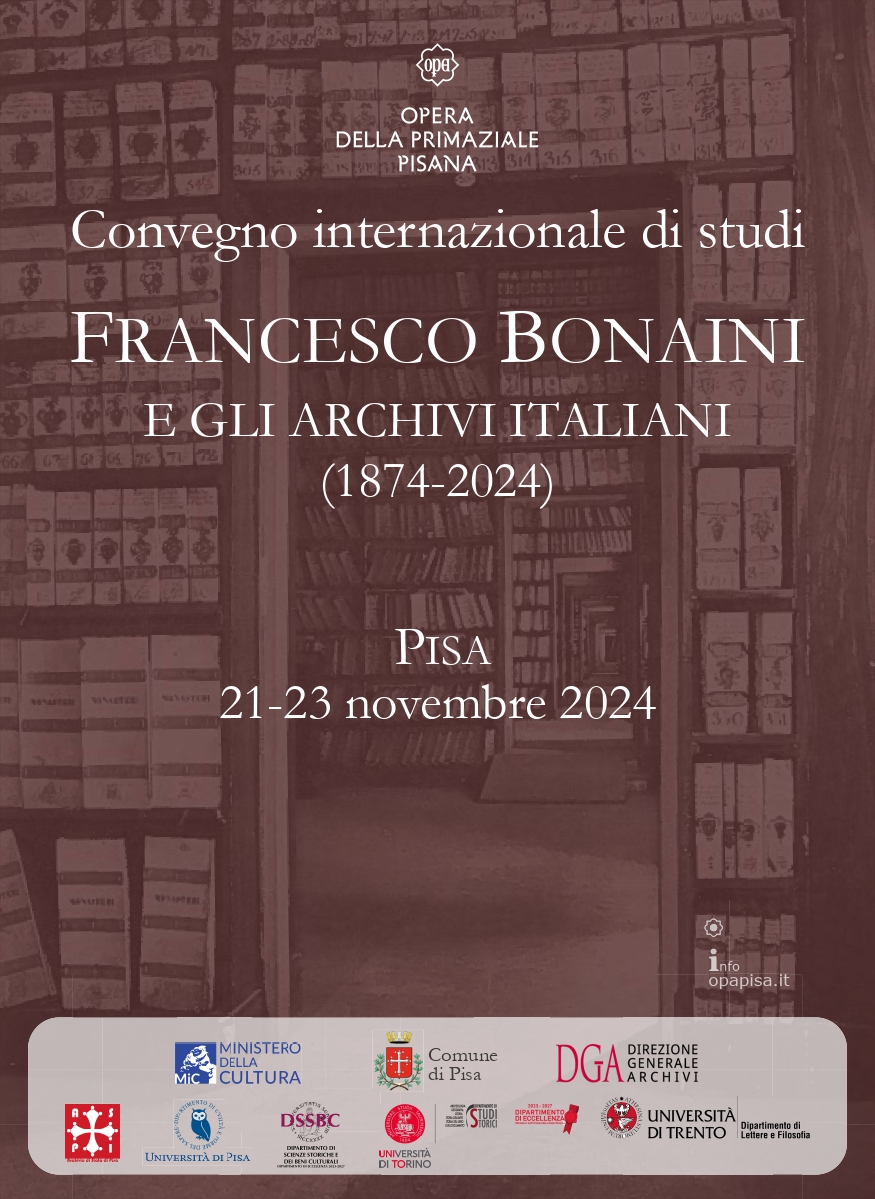 Il convegno, organizzato dal comitato scientifico composto da Andrea Giorgi (Università di Trento), Leonardo Mineo (Università di Torino), Cristina Moro (Università di Pisa), Stefano Moscadelli (Università di Siena) e Manuel Rossi (Opera della Primaziale Pisana), vede la collaborazione ed il patrocinio di numerosi enti tra cui il Comune di Pisa, la Direzione Generale Archivi e l’Archivio di Stato di Pisa, di cui lo stesso Bonaini fu fondatore.