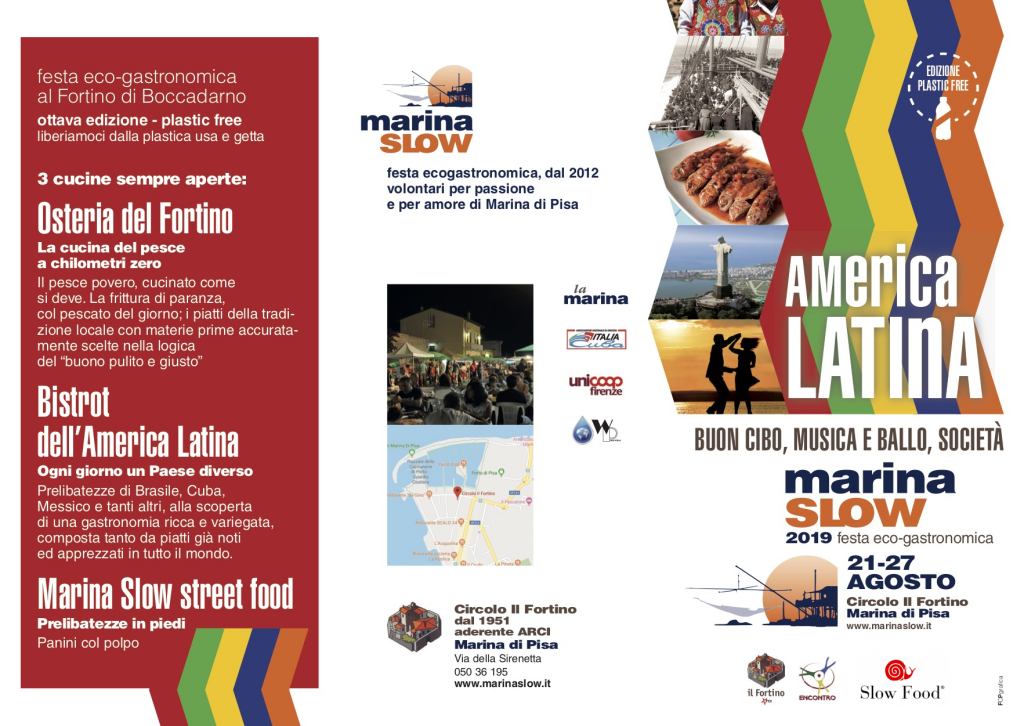 I ritmi e i sapori dell’America Latina ospiti dell’ottava edizione di Marina Slow, la festa eco-gastronomica organizzata a Marina di Pisa dal Circolo Il Fortino e da Slow Food Toscana, con la collaborazione dell’associazione italo-brasiliana Encontro, dell’associazione Italia-Cuba e della CIA (La spesa in Campagna).