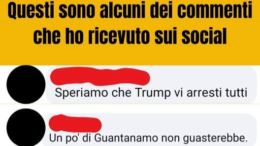 Oggi ho ricevuto questi due commenti su Facebook che auspicano il mio arresto da parte di Trump e richiamano Guantánamo, uno dei simboli più evidenti della sospensione dei diritti, dell’arbitrio e della violenza di Stato.