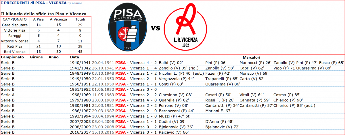 Secondo impegno casalingo per il Pisa che riceve la visita del Vicenza. I numeri, le curiosità e le probabili formazioni. La partita in diretta ed in esclusiva su Punto Radio Cascina a partire dalle 13:30