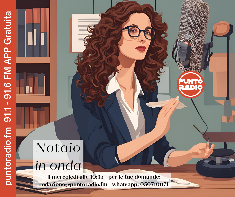 Seconda stagione su Punto Radio de "Il Notaio in onda", la trasmissione dedicata al mondo e all'attività notarile, che da la possibilità ai radioascoltatori di poter chedere chiarimenti al Notaio Margherita Caccetta, ideatrice della trasmissione, che sarà in diretta negli studi dell'emittente cascinese martedì 31 marzo alle 10:35 nel corso del contenitore di Punto Radio mattutino "Le Note del Mattino" condotto da Massimo Corsini.