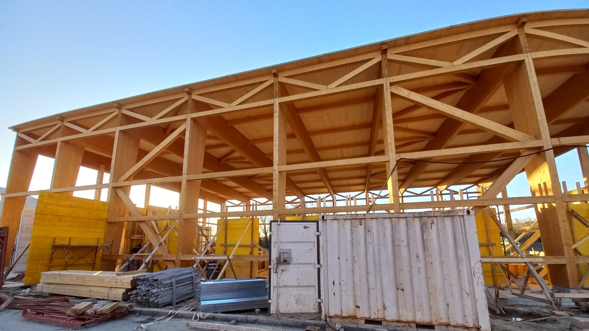 Conclusa la struttura in legno, alle fasi finali la realizzazione della copertura. Angori: "Rispettato il cronoprogramma"