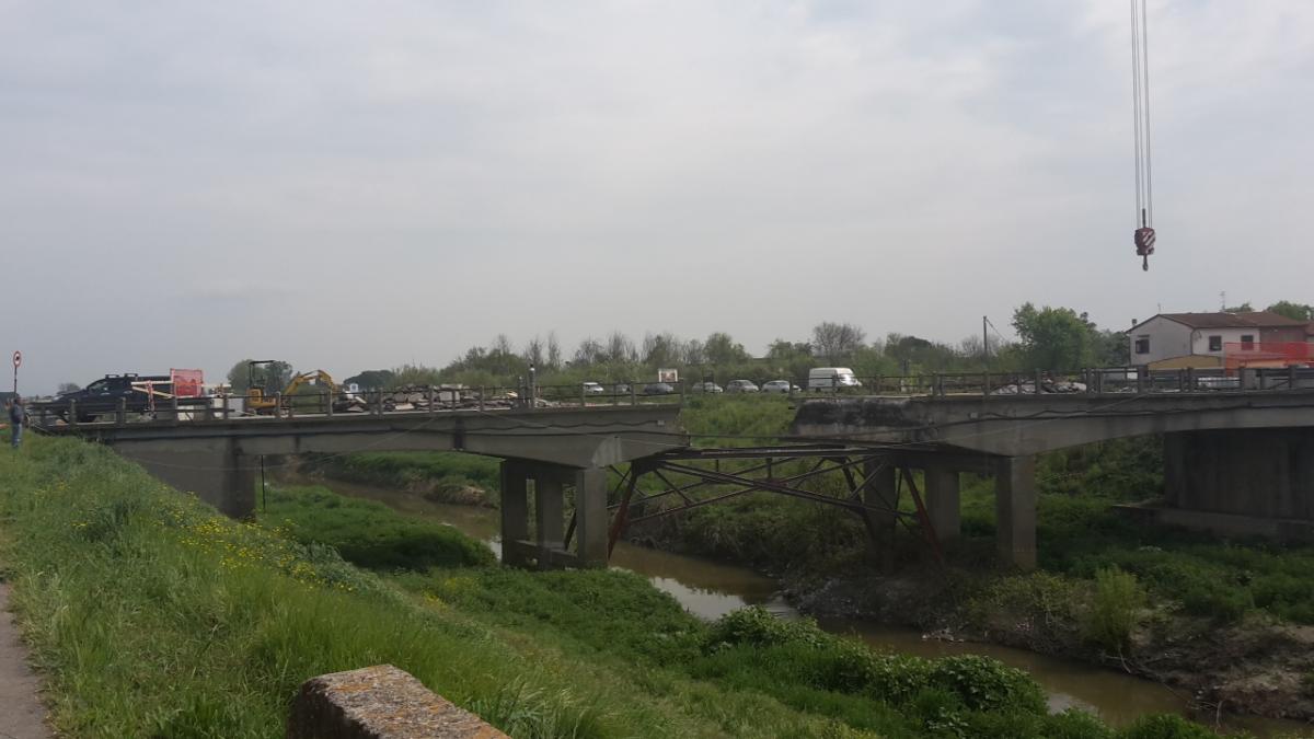 Nella foto in alto il ponte che attraversa il Canale Imperiale a Cascine di Buti nel 2017, prima dell'installazione del ponte bailey provvisorio