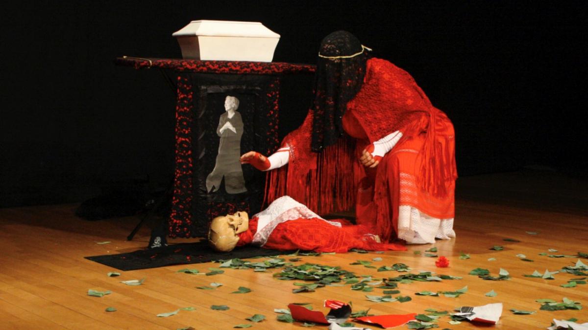 In scena, Julia Varley è la Morte: nascosta dietro una maschera a forma di teschio — il personaggio di Mr. Peanut — evoca la figura dell’attrice cilena María Cánepa, sua amica e compagna d’arte.