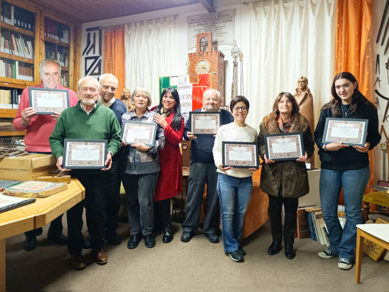 I soci premiati, con dedizione e competenza, hanno contribuito in maniera significativa alla conservazione e valorizzazione del patrimonio storico e culturale locale. Grazie al loro impegno, il museo si conferma un punto di riferimento per la comunità e un luogo di apprendimento e memoria per le future generazioni, promuovendo la cultura e i mestieri tradizionali che caratterizzano la storia di Cascina.