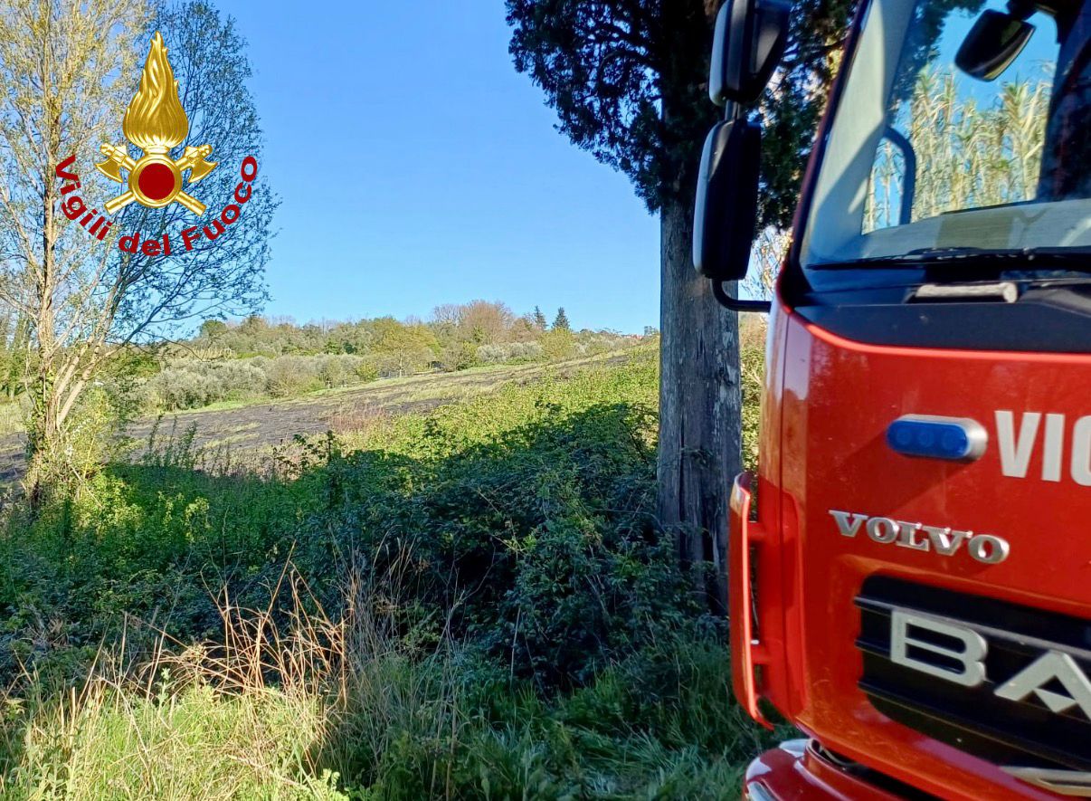 Due squadre dei Vigili del fuoco di Pisa sono intervenute nel primo pomeriggio di sabato 4 aprile in via della Rimessa, nel territorio comunale di Palaia, per un incendio di sterpaglie sviluppatosi ai piedi di una collina.