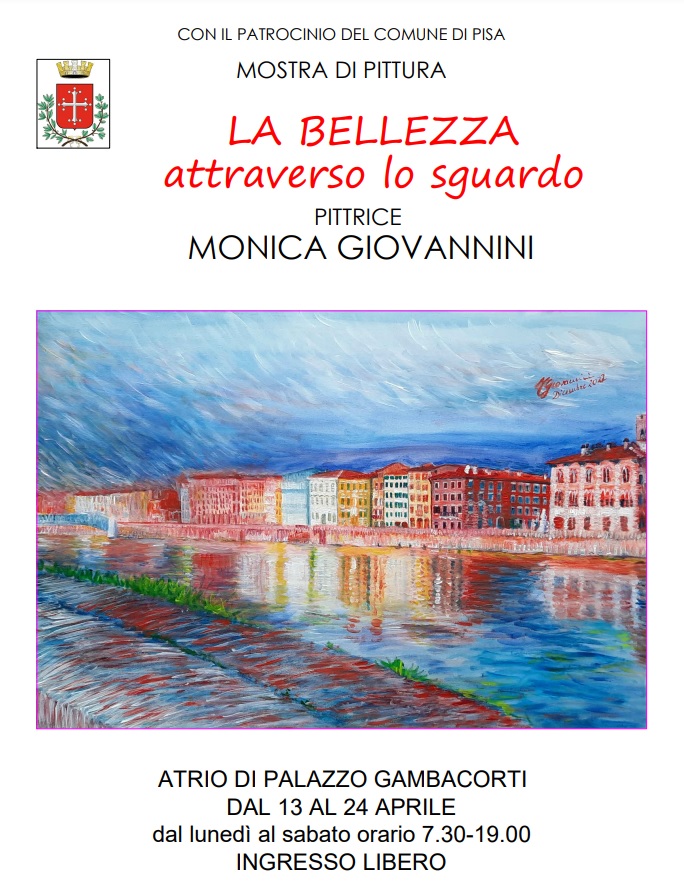 Si svolgerà presso l’atrio di Palazzo Gambacorti, dal 13 al 24 aprile, la mostra d’arte “La bellezza attraverso lo sguardo” dell’artista Monica Giovannini