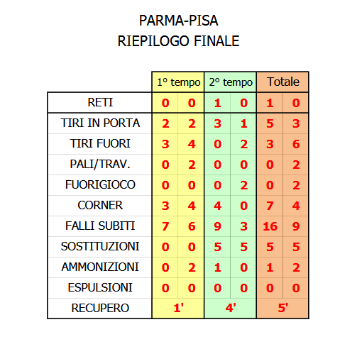 PARMA-PISA SPORTING CLUB: 1-0 (trentaquattresima giornata serie A)