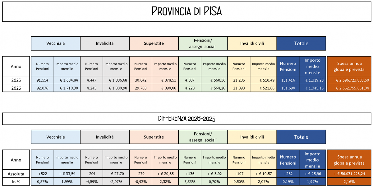 Ancora più nel dettaglio, arriviamo alla provincia di Pisa: in questo caso la spesa si attesta a poco più di 2,6 miliardi di euro, con un incremento del 2,16% rispetto al 2025.
