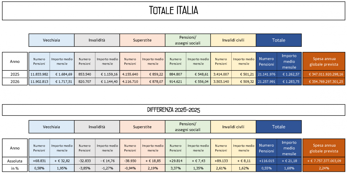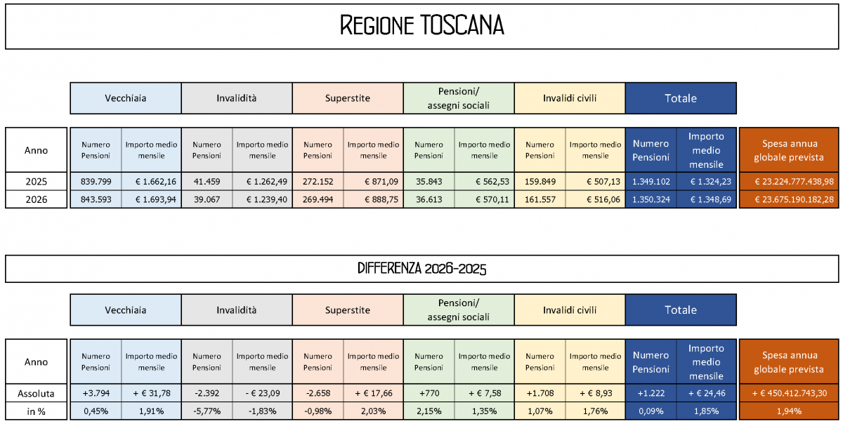 Nella tabella seguente sono riportati i dati nel dettaglio, con la suddivisione per tipologia di pensione.