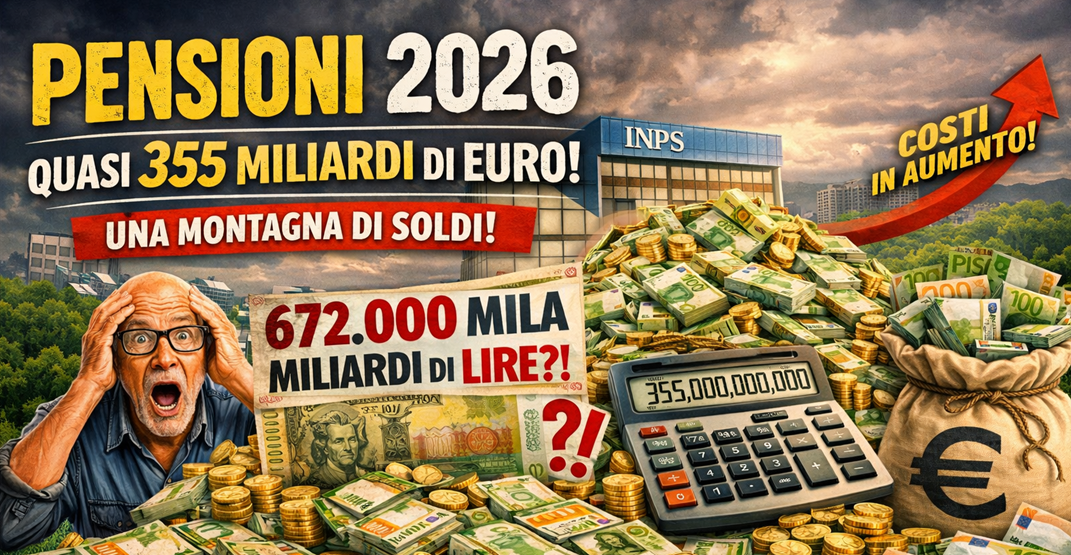 Pensioni 2026: la spesa sfiora i 355 miliardi (e in lire fa girare la testa)