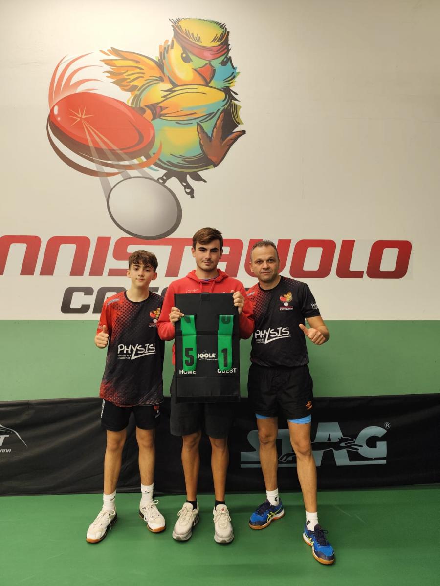 Protagonista assoluto Petrica Nita, autore di una doppietta, mentre Lorenzo Tavoletti ha conquistato un punto prezioso rimontando un match spettacolare contro Andrea Bongini, figura simbolo del tennistavolo toscano. Bene anche il giovane Riccardo Grulliero, che ha centrato la sua seconda vittoria nella categoria, confermando il buon momento di forma della squadra.