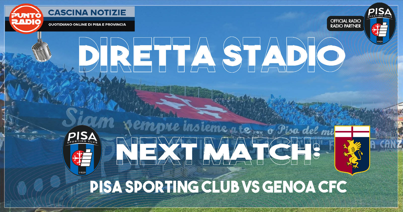 Per tutta la stagione 2022-2023 le partite del Pisa Sporting Club saranno trasmesse in esclusiva su Punto Radio Cascina (91.1-91.6 FM), nel corso di Diretta Stadio, il programma a cura di Massimo Corsini, Giuseppe Grigò, Paolo Sardelli e Gabriele Bianchi. Segui gli aggiornamenti su Instagram @puntoradiocascina