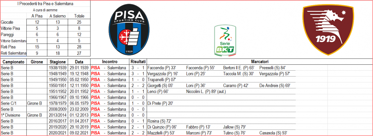 Pisa-Salernitana Seguila LIVE (23a giornata serie B) - CRONACA, INTERVISTE, STATISTICHE