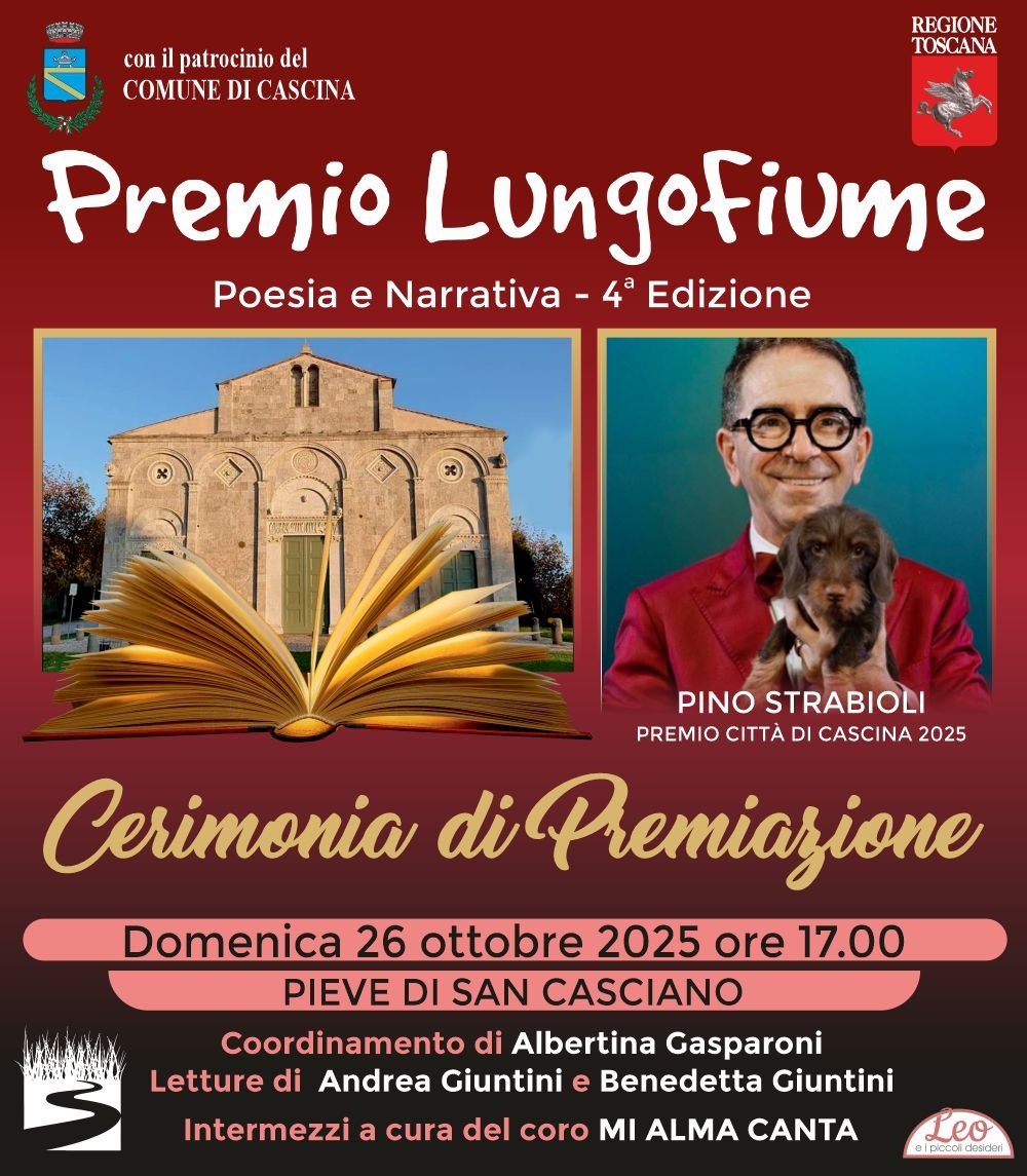 Si avvicina l’atto finale del Premio Lungofiume – Poesia e Narrativa 2025. La cerimonia-spettacolo, durante la quale saranno decretati i vincitori, si svolgerà il 26 ottobre, dalle 17, nella Pieve dei Santi Ippolito e Cassiano a San Casciano (Cascina)