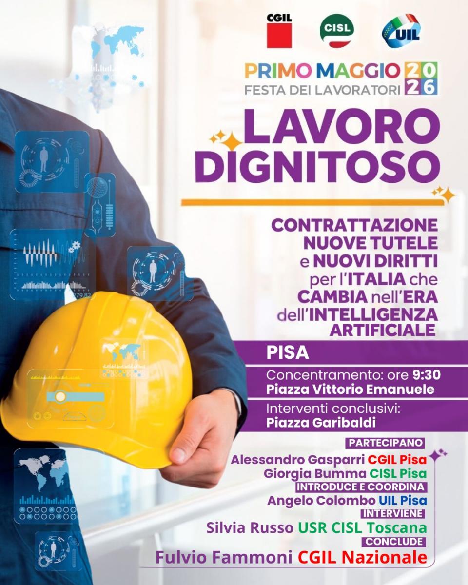 Il Primo Maggio 2026 torna a Pisa città come centro principale delle celebrazioni, con iniziative diffuse anche a Pomarance e Montecalvoli, nel segno del “lavoro dignitoso”, in un contesto provinciale segnato da una crisi industriale sempre più strutturale.