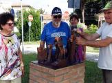 A celebrare il ritorno di questa bella opera in Piazza Noves, oltre a Alain, alla sua compagna Martine, e a Giovanni erano presenti la mattina di Mercoledì 2 Agosto le consigliere del Comune di Calcinaia Eva Masoni e Michela Bernini e, nel pomeriggio della stessa giornata, anche Patrizia Pellegrini del Comitato di Gemellaggio del Comune di Calcinaia.