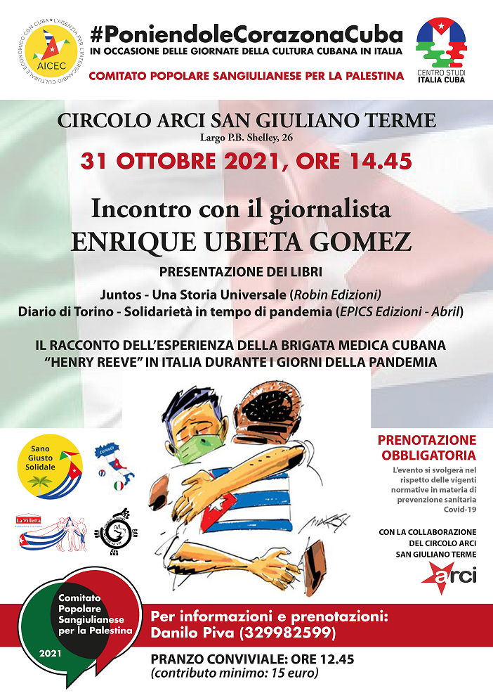 Sarà l'occasione per parlare dell'esperienza italiana della Brigata Medica Internazionalista Cubana “Henry Reeve”: un contingente di medici e infermieri specializzati nella gestione di situazioni di disastri ambientali ed epidemie, che lo scorso anno sono arrivati in Italia per sostenere il nostro personale sanitario nel momento più buio della pandemia Covid-19. A questa esperienza, una incredibile dimostrazione di solidarietà, Gómez ha dedicato due libri, “Juntos – Una storia universale” e “Diario di Torino – La solidarietà in tempi di pandemia”, che saranno presentati in occasione dell'incontro.