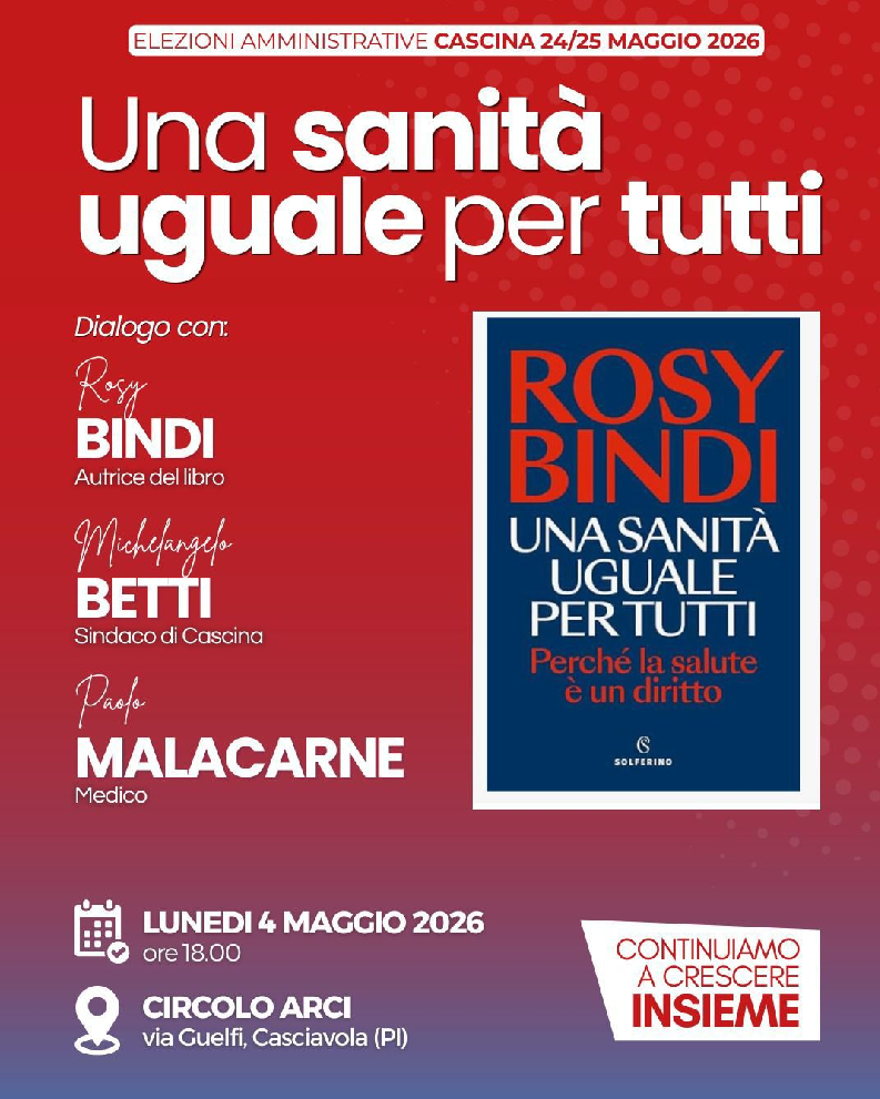 Liste d’attesa, carenza di personale, risorse insufficienti, crescita del privato e disuguaglianze tra territori sono segnali evidenti di una trasformazione già in atto. Nel suo libro, Bindi analizza con chiarezza queste criticità e lancia un messaggio preciso: il sistema sanitario pubblico non è un costo da ridurre, ma un investimento da rafforzare. E avverte sui rischi di una deriva verso modelli più iniqui e onerosi. L’incontro di Cascina vuole essere un momento di confronto per capire cosa sta accadendo davvero alla sanità italiana, pisana e toscana e, soprattutto, cosa si può ancora fare per difendere un diritto fondamentale sancito dalla Costituzione.