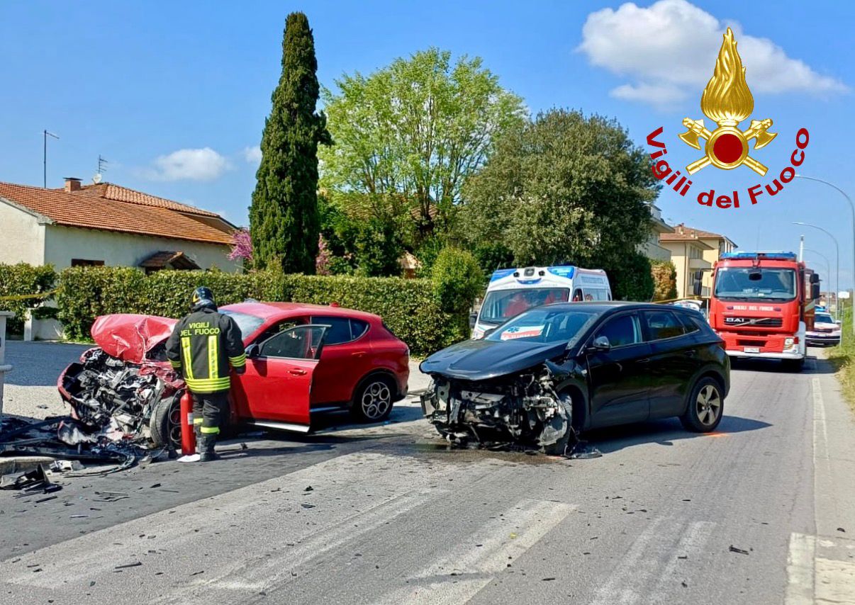 Grave incidente stradale nel primo pomeriggio di sabato 11 aprile a Ponsacco, dove due auto si sono scontrate frontalmente in via Antonio Gramsci. L’allarme è scattato alle 14 e sul posto sono intervenute due squadre dei Vigili del fuoco di Pisa.