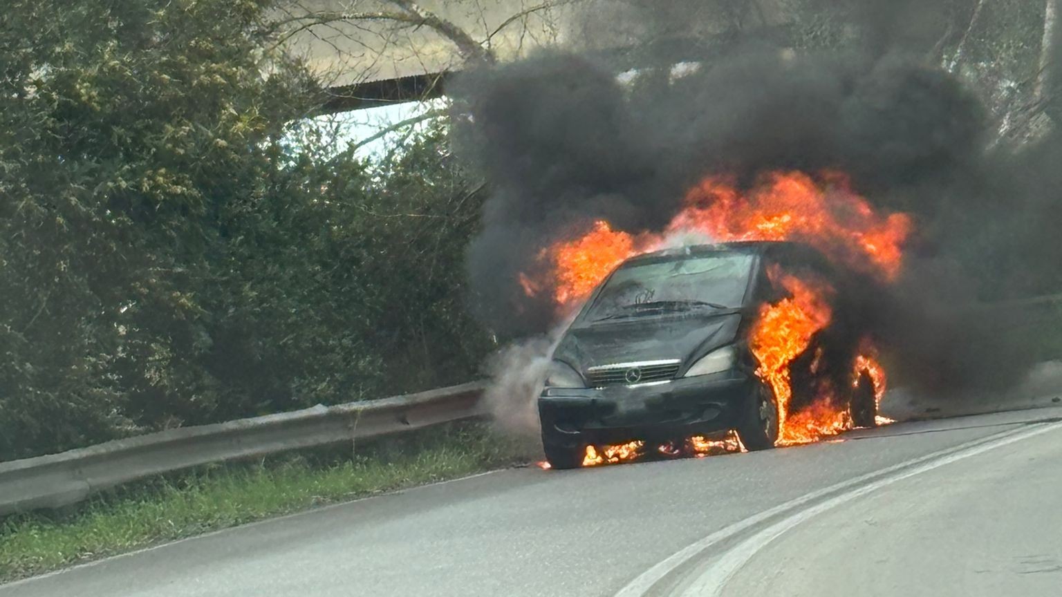 Le fiamme hanno colpito una Mercedes Classe A, andata completamente distrutta.