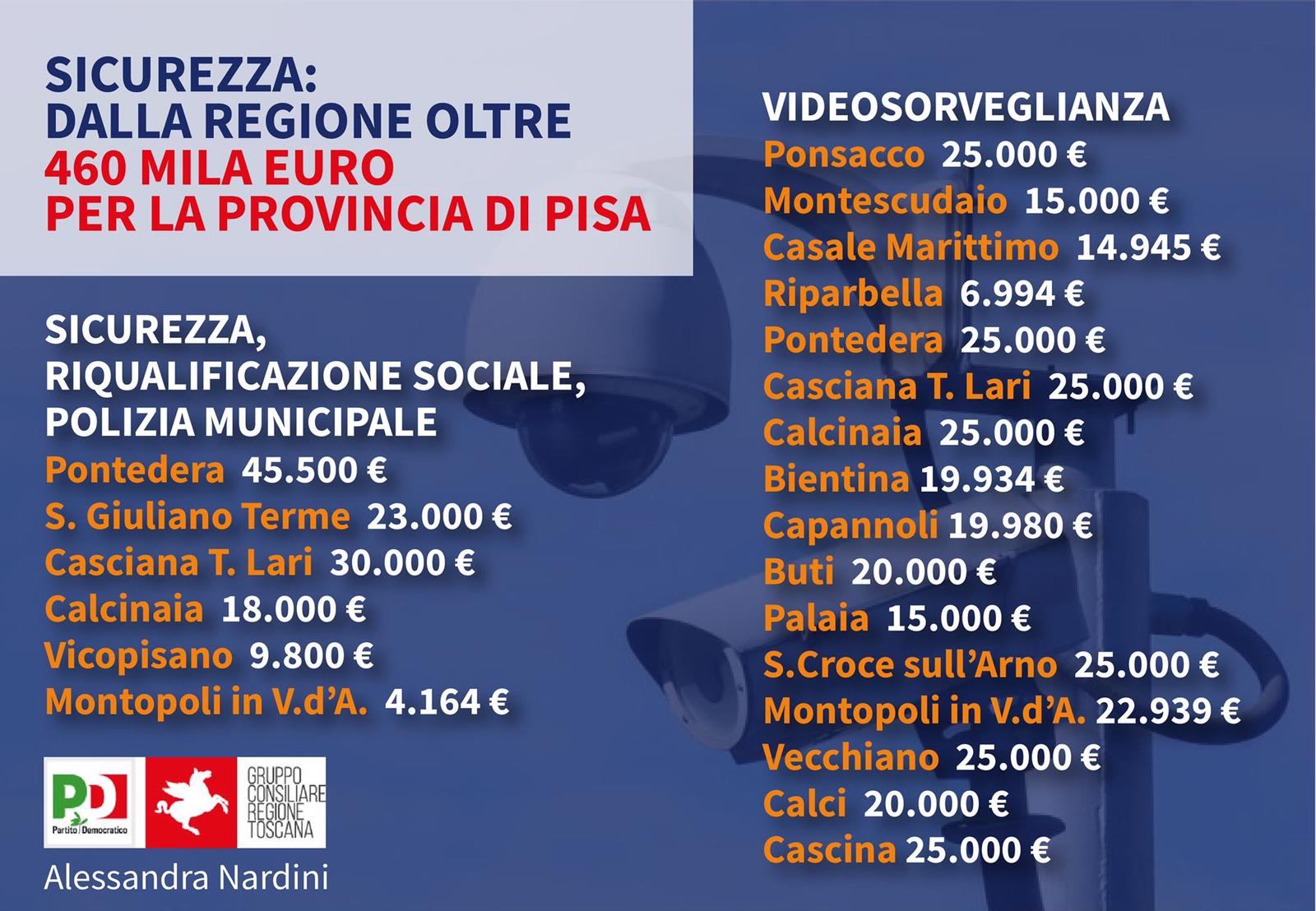 Dei 4 milioni di euro stanziati per la "sicurezza" dalla Regione Toscana, 460 mila euro sono stati intercettati dai progetti dei comuni della nostra provincia.