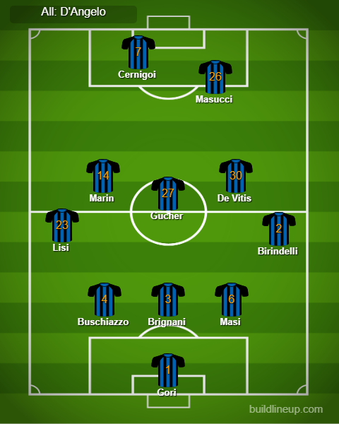 In casa nerazzurra si devono fare i conti con l’assenza di Liotti per squalifica e quella di Moscardelli per infortunio, fermo restando il 352, D’Angelo schiererà in porta Gori, sulla linea di difesa l’unico sicuro di una maglia è Brignani, che potrebbe essere affiancato da Masi e Buschiazzo. A centrocampo Birindelli e Lisi saranno gli esterni di destra e di sinistra, con Gucher in mezzo e De Vitis e Marin al suo fianco. In avanti Cernigoi potrebbe ritrovare una maglia da titolare con Masucci al suo fianco.