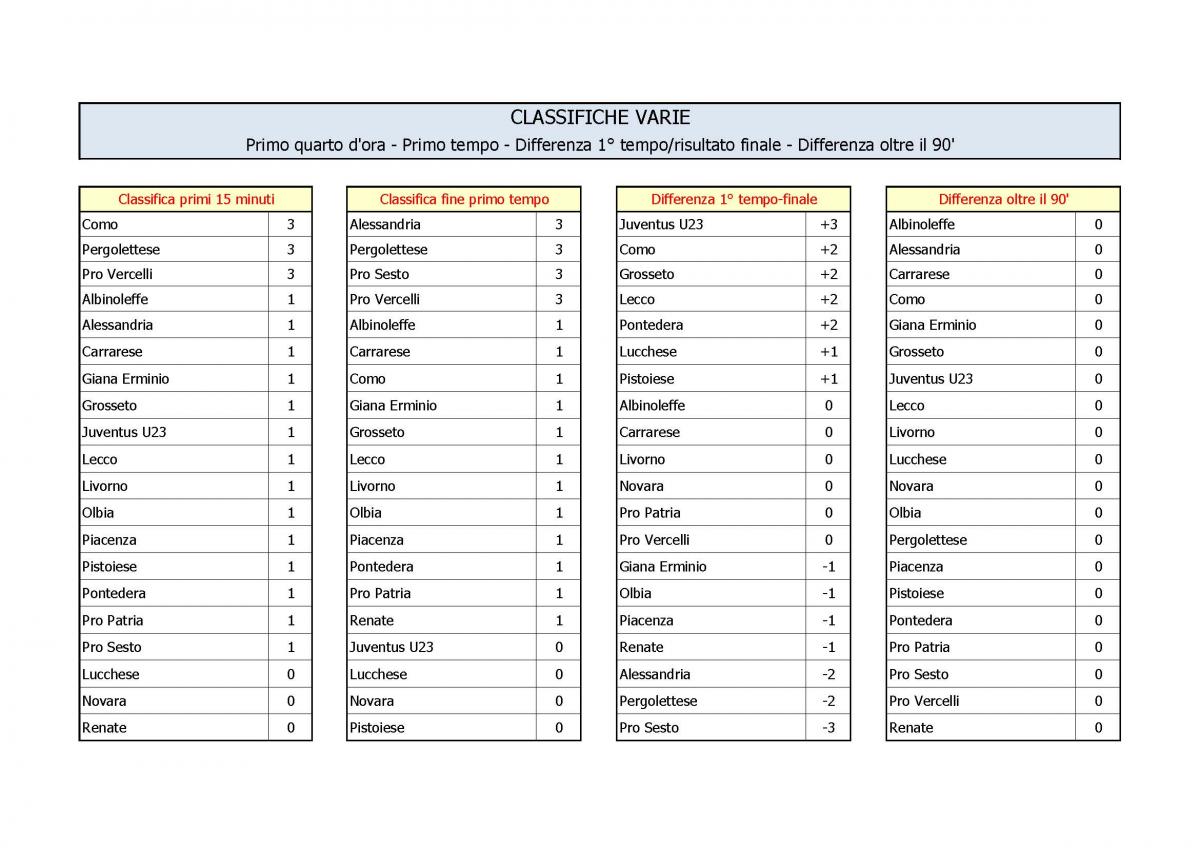 Ovviamente per ora, dopo la prima giornata, le classifiche sono banali ed anche le curiosità scarseggiano, ma entro poche settimane cominceremo a fare sul serio. Per ora da segnalare le 3 vittorie in trasferta, una media-gol a partita piuttosto bassa (2,100 gol a partita), esatta parità fra punti esterni e punti interni e, per quanto riguarda le realizzazioni multiple, 2 doppiette in questa prima giornata.